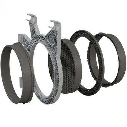 Secret Jardin‘s DF25 flange bracketis to be placed in the corner of your tent where you want to make your entrance/exit hole, attaching the grey part to the 25mm diameter bars. Then, on the outside, connect the second black part to it using screws and a screwdriver.
