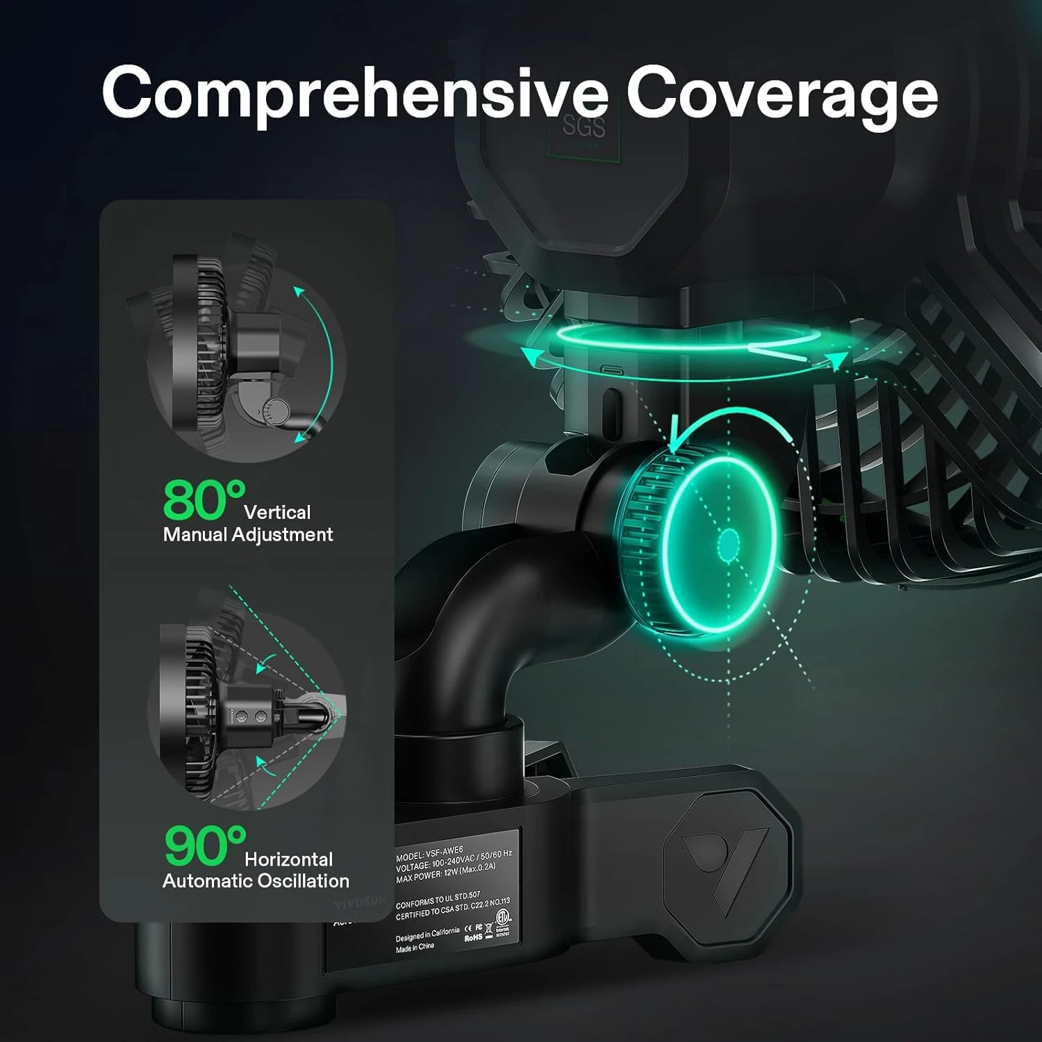 - Powerful & Quiet: Powered by an upgraded dual ball bearing EC motor, this clip fan delivers powerful 580 CFM airflow at a noise level of just 36 dB(A); The local timer provides 3 cycle settings, making it easy to customize air circulation